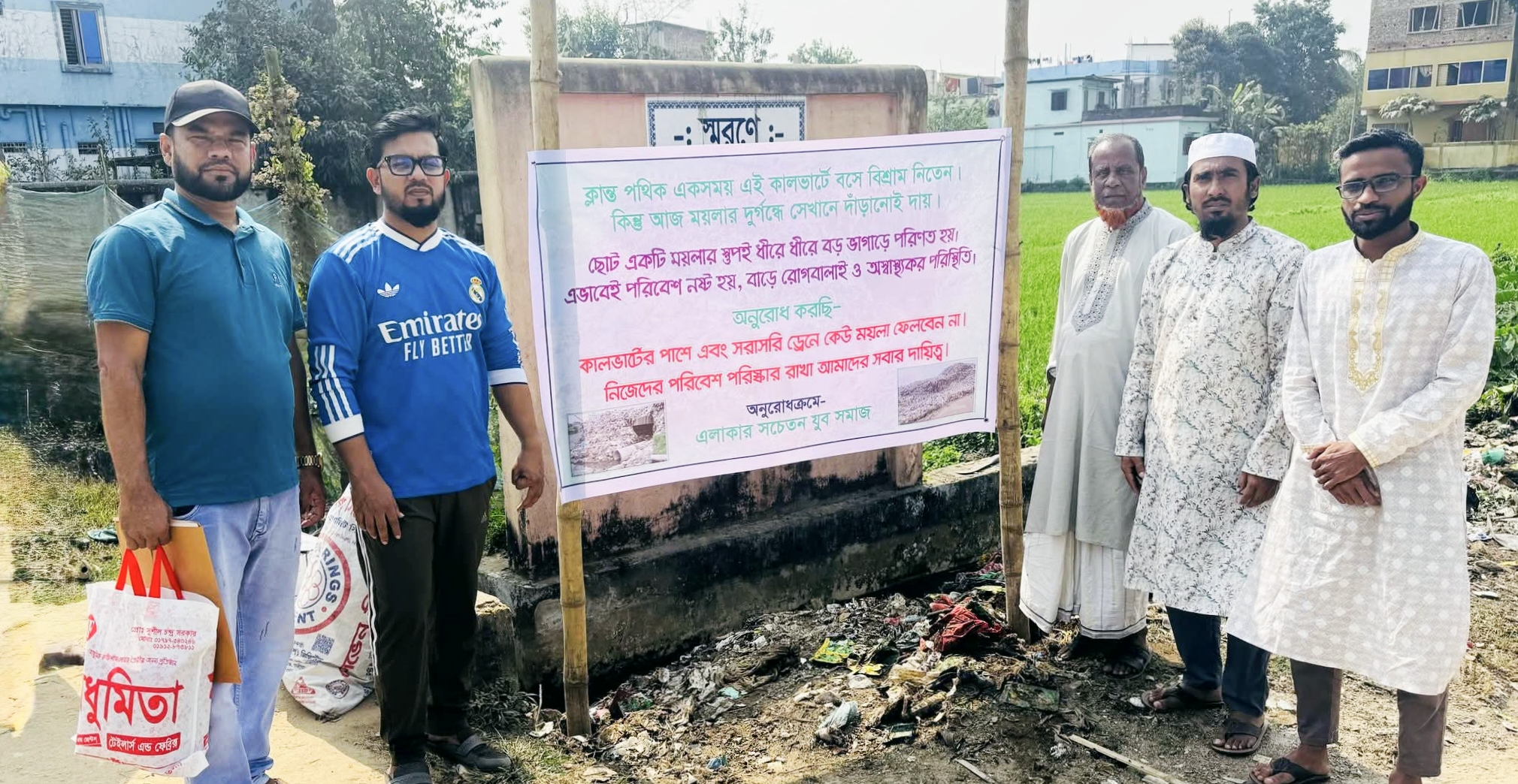 শ্রীমঙ্গলে সড়কের পাশে বর্জ্য অপসারণে সামাজিক উদ্যোগ, সচেতনতার আহ্বান