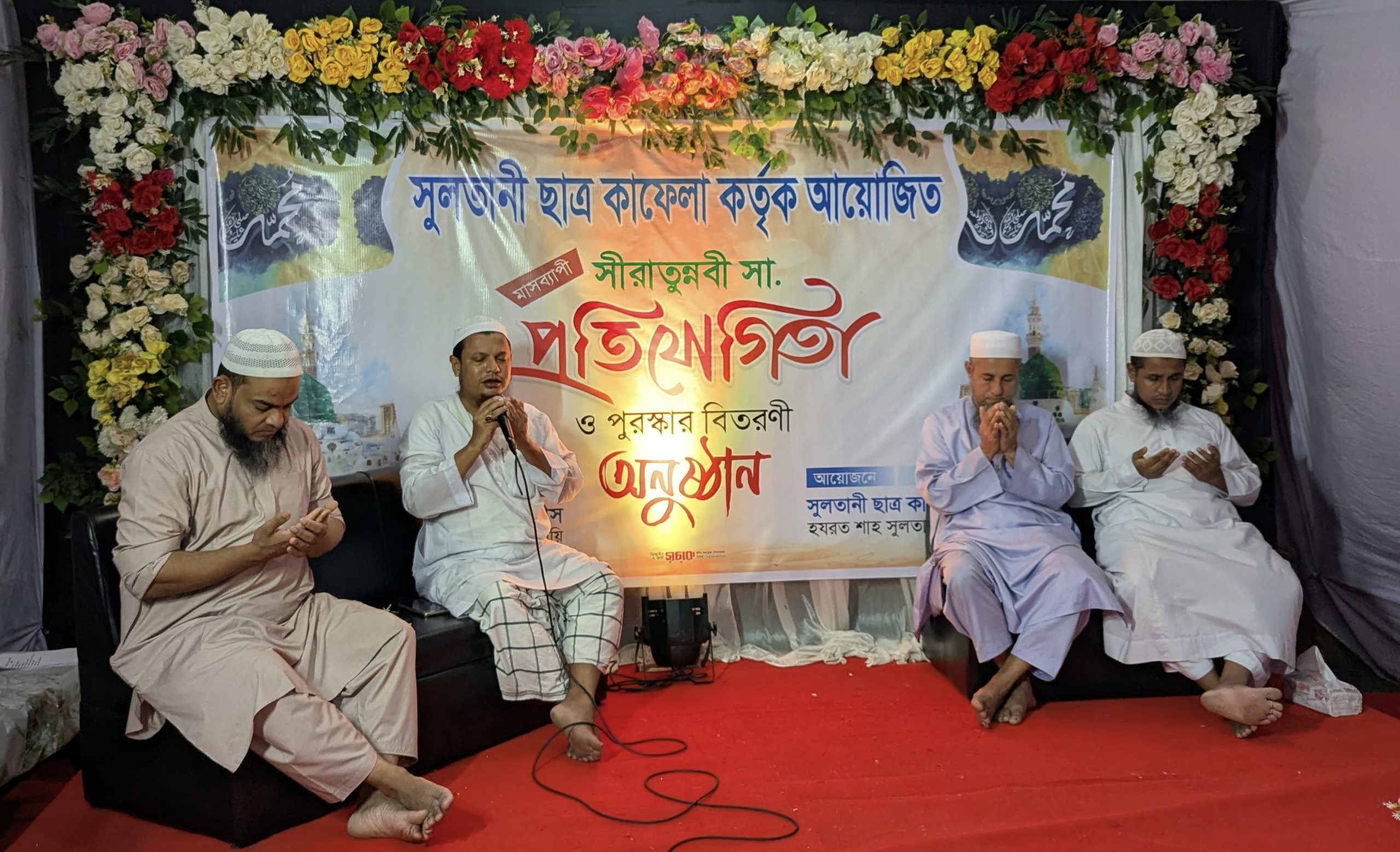সন্ধ্যা ৬ ঘটিকায় ছিল সৃজনঘর আয়েজিত কলেজ-ইউনিভার্সিটি ভিত্তিক জাতীয় সিরাত প্রতিযোগিতার ভিজুয়াল আসর ‘টুয়েলভ মিনিট সিরাত ২০২৫’-এর পুরস্কার বিতরণী। এতে সিলেটের বিভিন্ন শ্রেণিপেশার প্রতিনিধিত্বশীল ব্যক্তিবর্গের উপস্থিতিতে প্রথম স্থান অধিকারী বাংলাদেশ উন্মুক্ত বিশ্ববিদ্যালয়ের শিক্ষার্থী মিজানুর রহমান নাঈমকে পবিত্র উমরাহ’র প্যাকেজ, দ্বিতীয় স্থান অধিকারী ইসলামি বিশ্ববিদ্যালয় কুষ্টিয়ার শিক্ষার্থী ইহসানুল হক খানকে একটি ল্যাপটপ এবং ঢাকা সিটি কলেজের শিক্ষার্থী মুবিদুর রহমান নাবিলকে একটি ডেস্কটপ পুরস্কার প্রদান করা হয়। এ ছাড়াও দেশের ৮০টি কলেজ ইউনিভার্সিটি থেকে সিরাতের ব্যতিক্রমী ও গবেষণামূলক এ প্রতিযোগিতায় অংশ নেওয়া প্রতিযোগীদের মধ্যে সেরা ১২-তে স্থান পাওয়া বাকি ৯জনের হাতেও নগদ অর্থ-সহ বিশেষ পুরস্কার তুলে দেওয়া হয়।