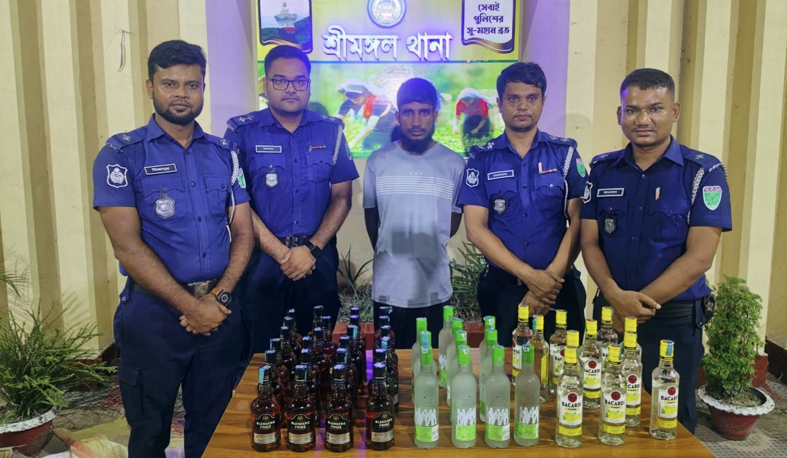 শ্রীমঙ্গলে পুলিশের অভিযানে বিদেশী মদসহ যুবক গ্রেফতার