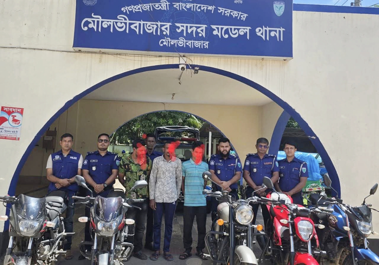 মৌলভীবাজারে মোটরসাইকেল চোর চক্রের তিন সদস্য গ্রেফতার