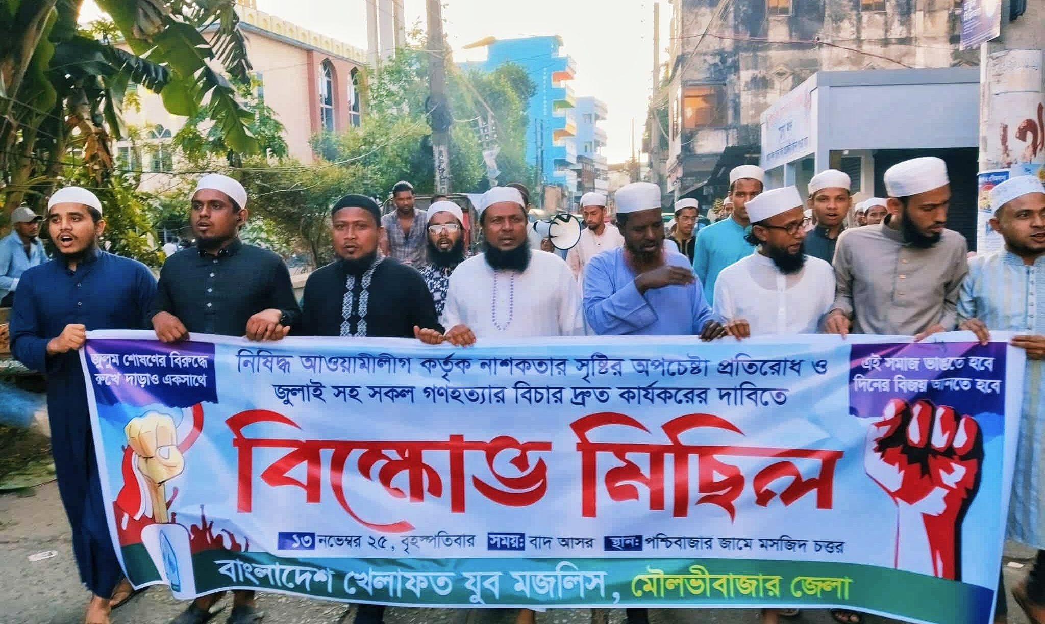মৌলভীবাজারে খেলাফত যুব মজলিসের বিক্ষোভ মিছিল