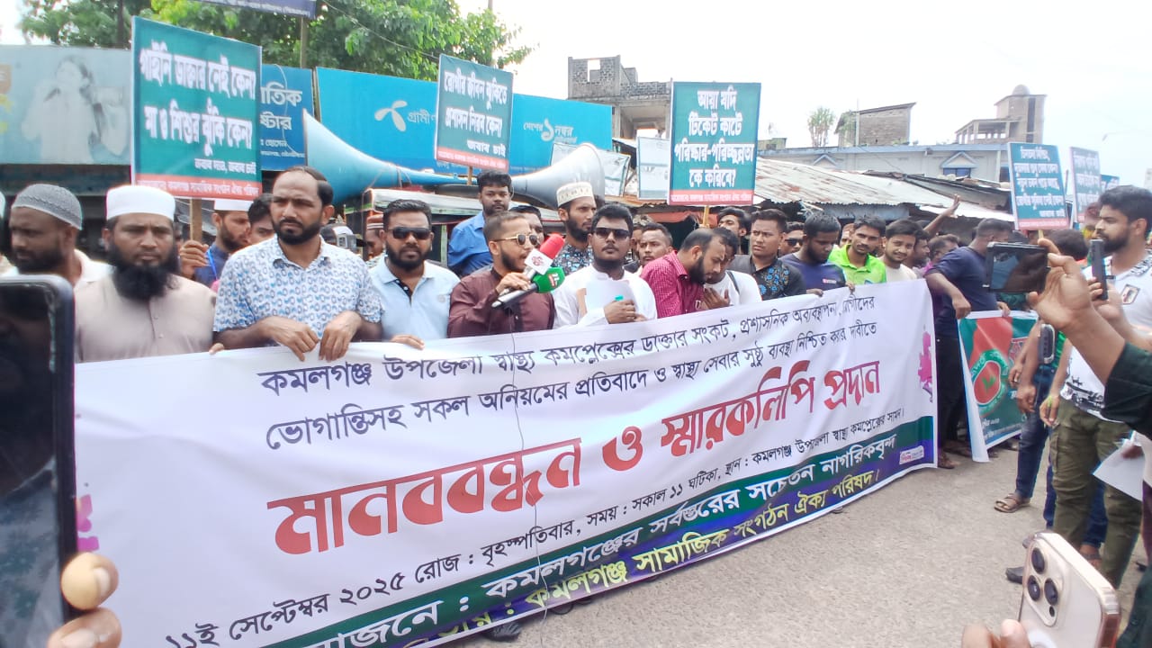 কমলগঞ্জে স্বাস্থ্য কমপ্লেক্স সংস্কারের দাবিতে মানববন্ধন
