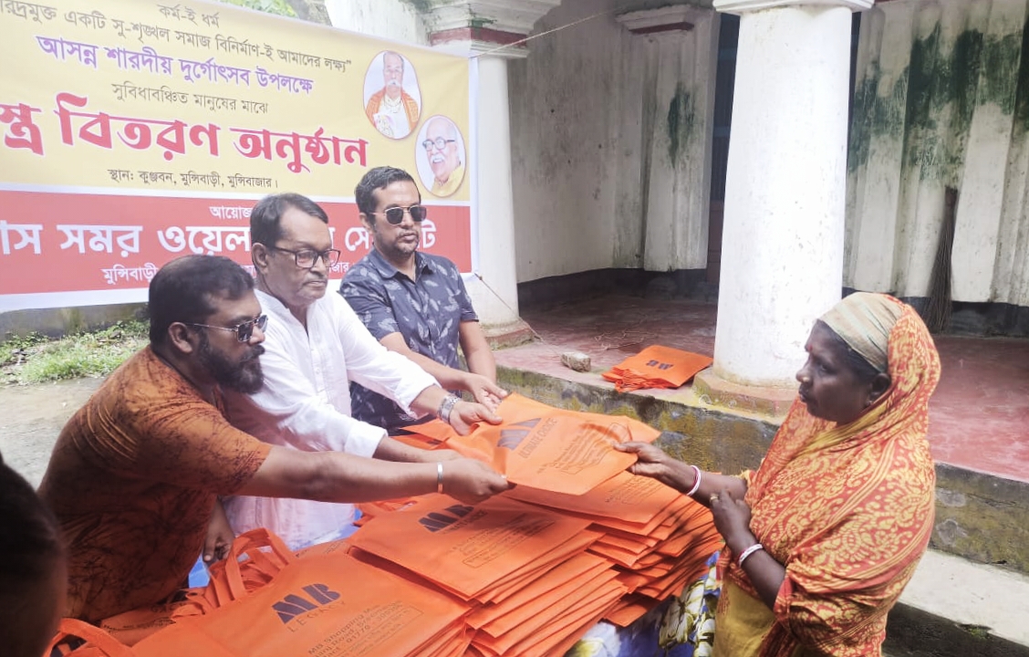 শারদীয় দুর্গাপূজা উপলক্ষে কমলগঞ্জে ২শত পরিবারে বস্ত্র বিতরণ