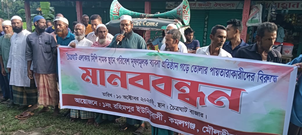 কমলগঞ্জে পুনরায় সিপি চালুর ষড়যন্ত্রের প্রতিবাদে মানববন্ধন