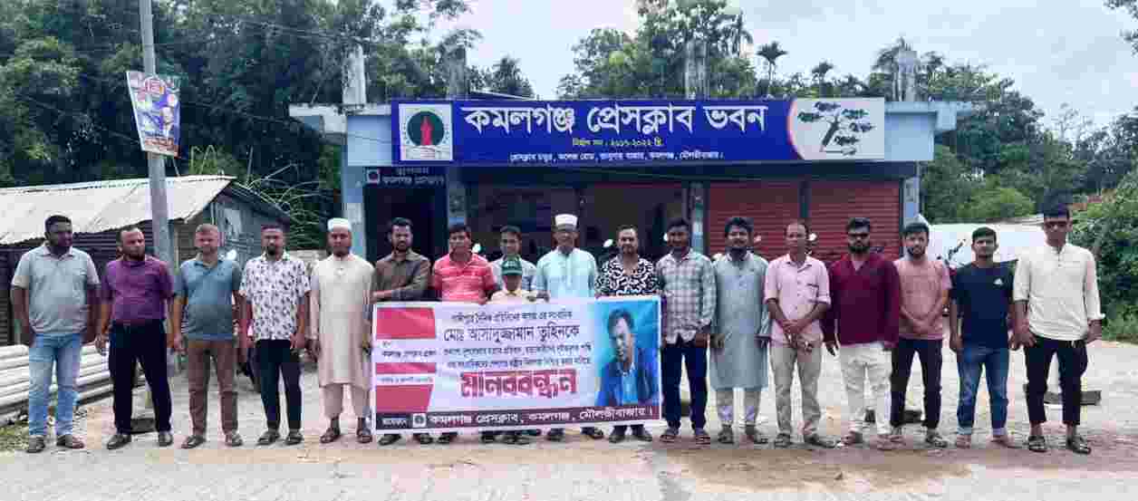 সাংবাদিক তুহিন হত্যার প্রতিবাদে কমলগঞ্জে মানববন্ধন