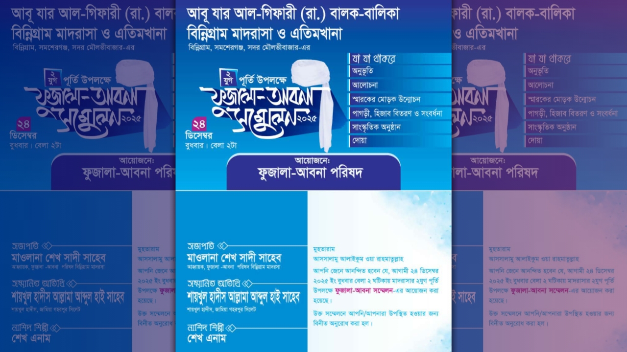 মৌলভীবাজারে বিন্নিগ্রাম মাদরাসার ফুযালা আবনা সম্মেলন আগামীকাল