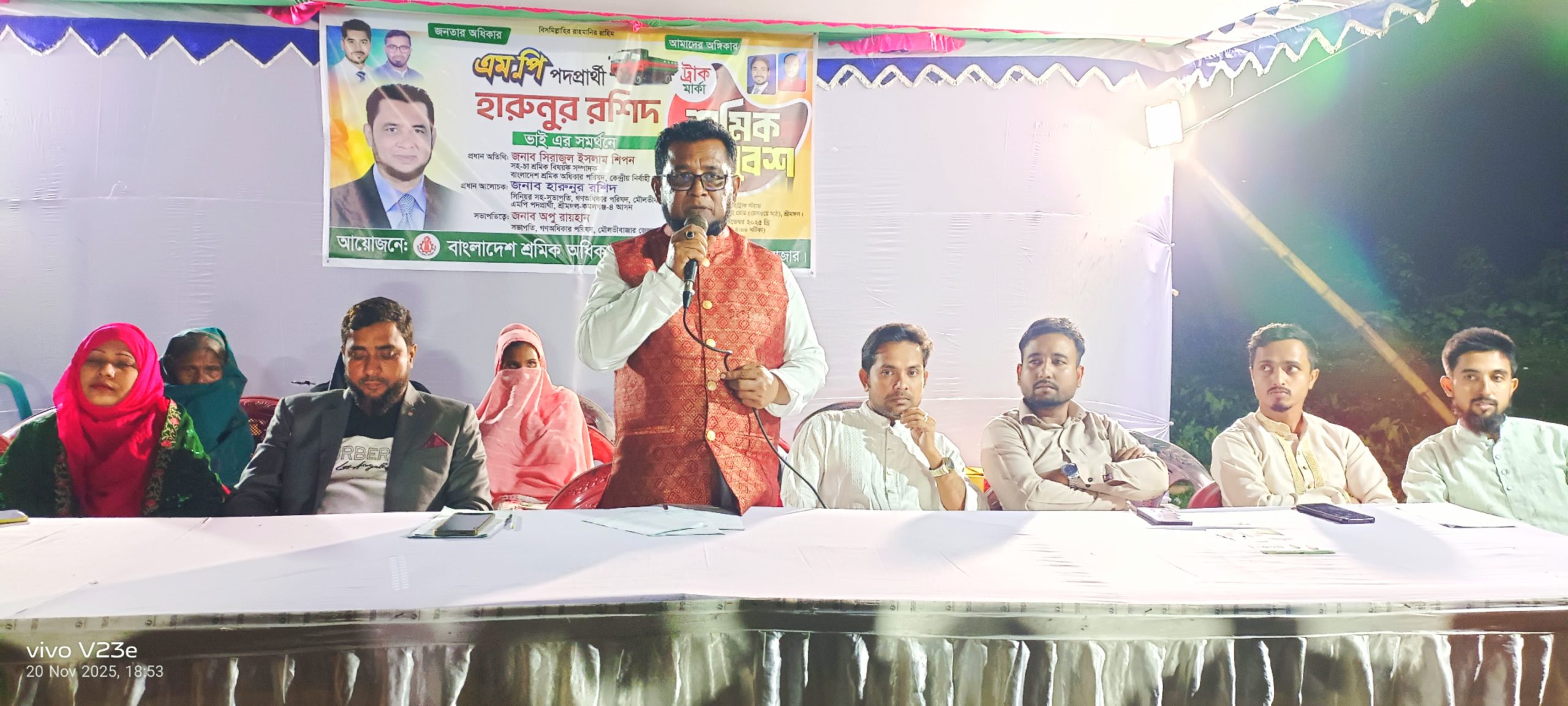 শ্রীমঙ্গলে এমপি প্রার্থী হারুনুর রশিদের সমর্থনে শ্রমিক সমাবেশ