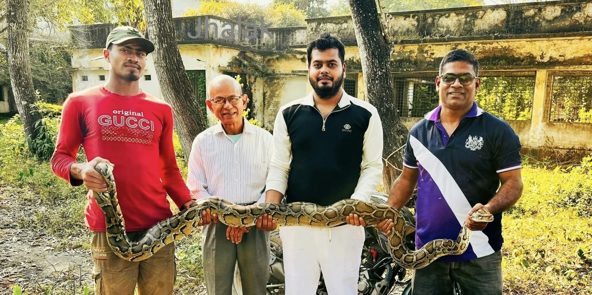 শ্রীমঙ্গলে কলেজের দেয়াল থেকে ১২ ফুটের অজগর উদ্ধার