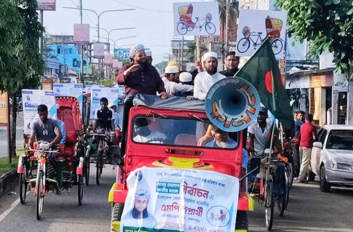 মৌলভীবাজারে মাওলানা লুৎফুর রহমান কামালীর রিকশা প্রতীক নিয়ে শোডাউন