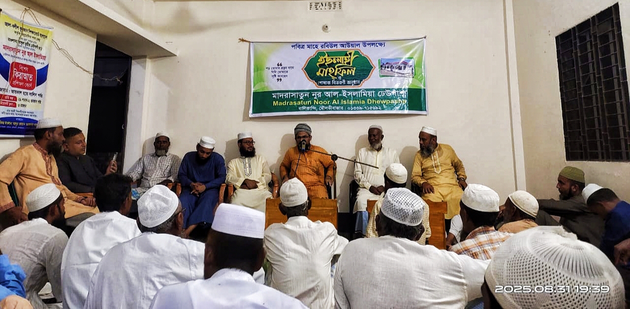 নিজস্ব প্রতিবেদক, মৌলভীবাজার পবিত্র মাহে রবিউল আওয়াল উপলক্ষে মৌলভীবাজার সদর উপজেলার চাঁদনীঘাট ইউনিয়নের ১নং ওয়ার্ডের ঢেউপাশায় অবস্থিত মাদরাসাতুন নূর আল-ইসলামিয়া’র